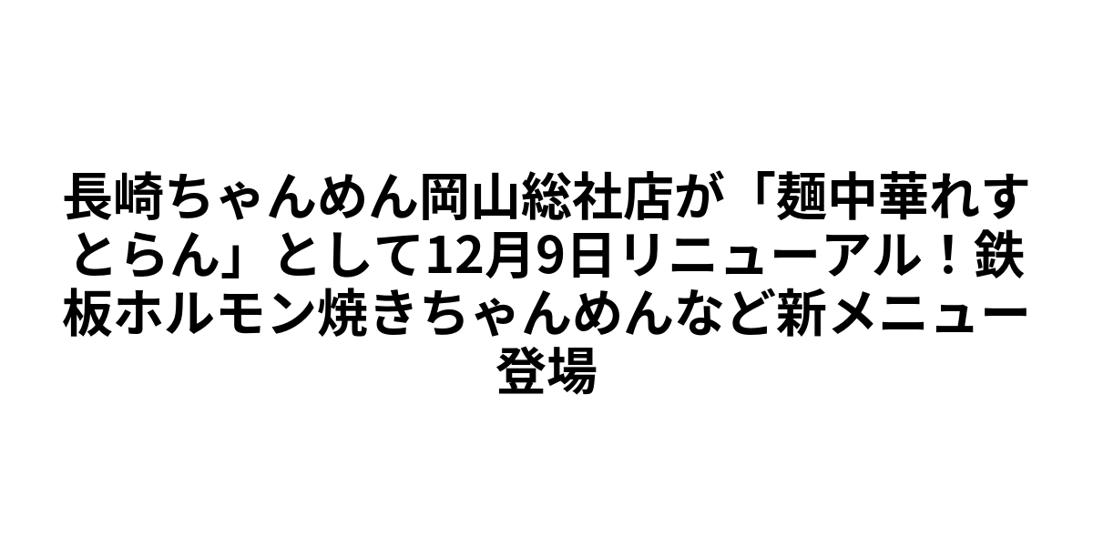 1971年(昭和46年)から半世紀以上にわたって地域に愛されてきた「長崎ちゃんめん」が、新たな挑戦に踏み出します。岡山県総社市門田215-1に位置する岡山総社店が、「麺中華れすとらん」という新しいコンセプトで2024年12月9日(火)にグランドオープンを迎えます。