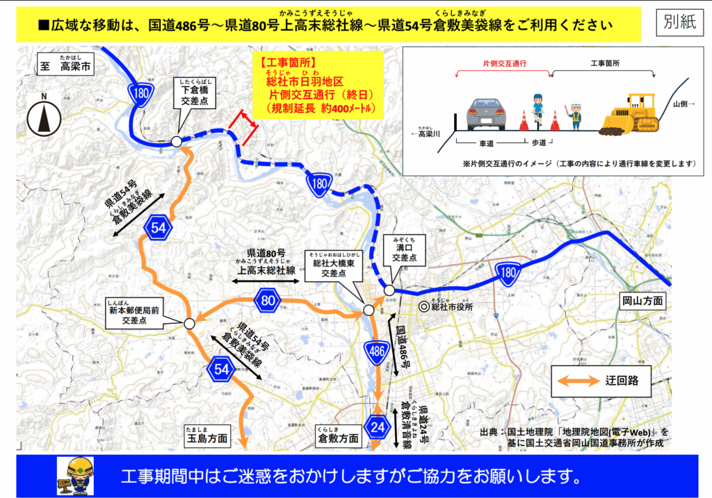 180号線が片道通行になっている所があり注意です!行き帰りに大変混む可能性があります。迂回路もありますのでこちらも検討ください。(こちらも混んでいる可能性もありますが)