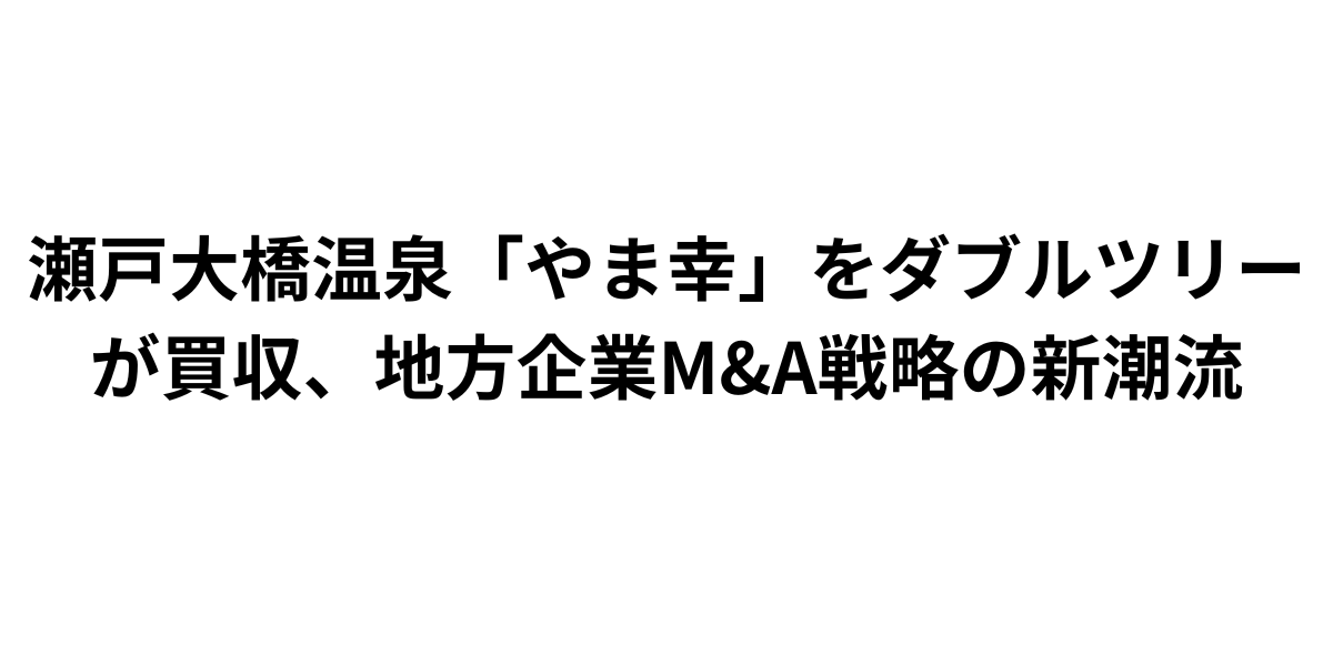 2025年9月22日、岡山県倉敷市を拠点とするダブルツリー(旧ハヤシ)が、瀬戸大橋温泉「やま幸」を運営する山本幸の全株式を4億円で取得し、2026年1月に子会社化すると発表した。