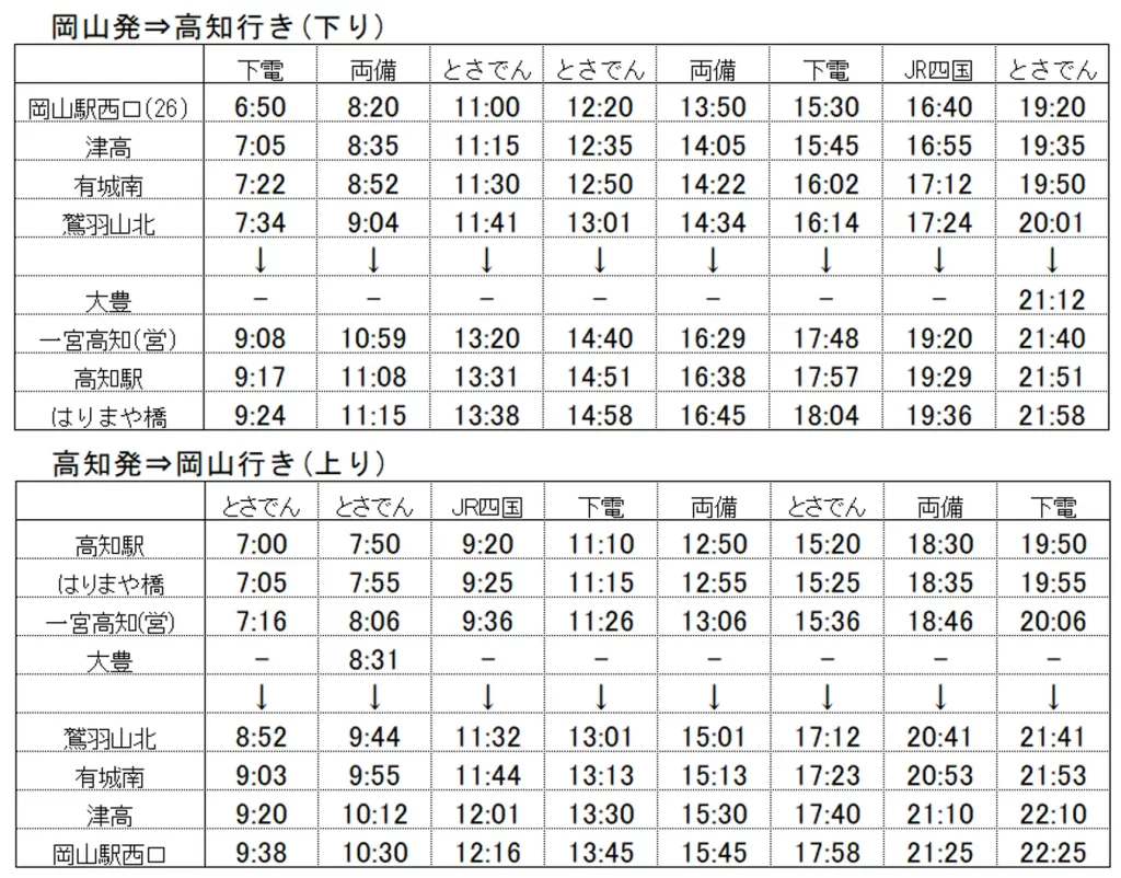 この「龍馬エクスプレス号」は、ジェイアール四国バス株式会社、下津井電鉄株式会社、とさでん交通株式会社との共同運行で、所要時間は約2時間30分とJR特急「南風」とほぼ同等の移動時間を実現しています。