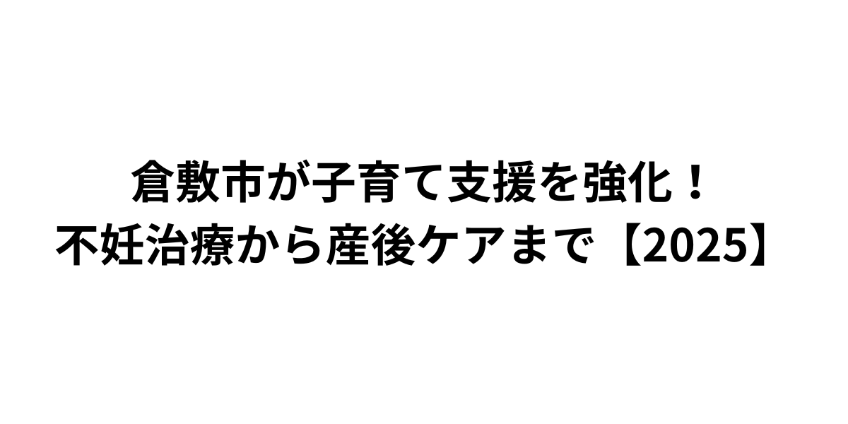岡山県倉敷市が、子育て世帯への支援を大幅に拡充する方針を打ち出しました。2025年度から本格的に実施される新制度は、不妊治療助成、1カ月児健診助成、産後ケア助成の3つを柱としています。この包括的な支援策により、子育て世帯の経済的負担を軽減し、安心して子どもを産み育てられる環境づくりを目指しています。