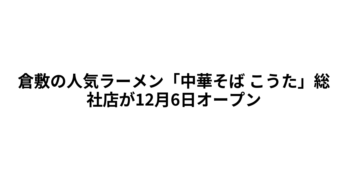 倉敷市児島で2016年から営業を続け、地元で絶大な支持を受けている「中華そば こうた」が、2024年12月6日(金)に総社市宿99-5に新店舗をオープンします。この場所は、岡山を代表する観光スポット備中国分寺から徒歩圏内という絶好のロケーションで、2024年10月20日に閉店した「らーめん夢民」の跡地を活用した出店となります。