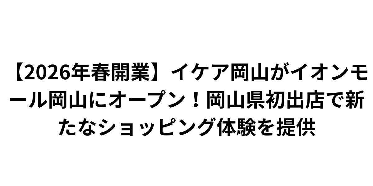 2026年春、岡山県初となるIKEA岡山がイオンモール岡山内にオープンします。スウェーデン発祥のホームファニッシングカンパニーとして、優れたデザイン性、機能性、サステナビリティ、高品質を兼ね備えた商品を手頃な価格で提供してきたイケアが、ついに岡山に上陸することになりました。