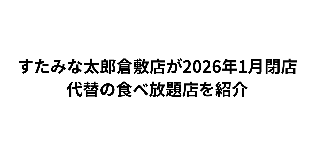 倉敷市平田にある「すたみな太郎 倉敷店」が2026年1月4日(日)をもって閉店することが発表されました。公式サイトによると「諸般の都合」による閉店とのことで、これにより岡山県内唯一のすたみな太郎が姿を消すこととなります。