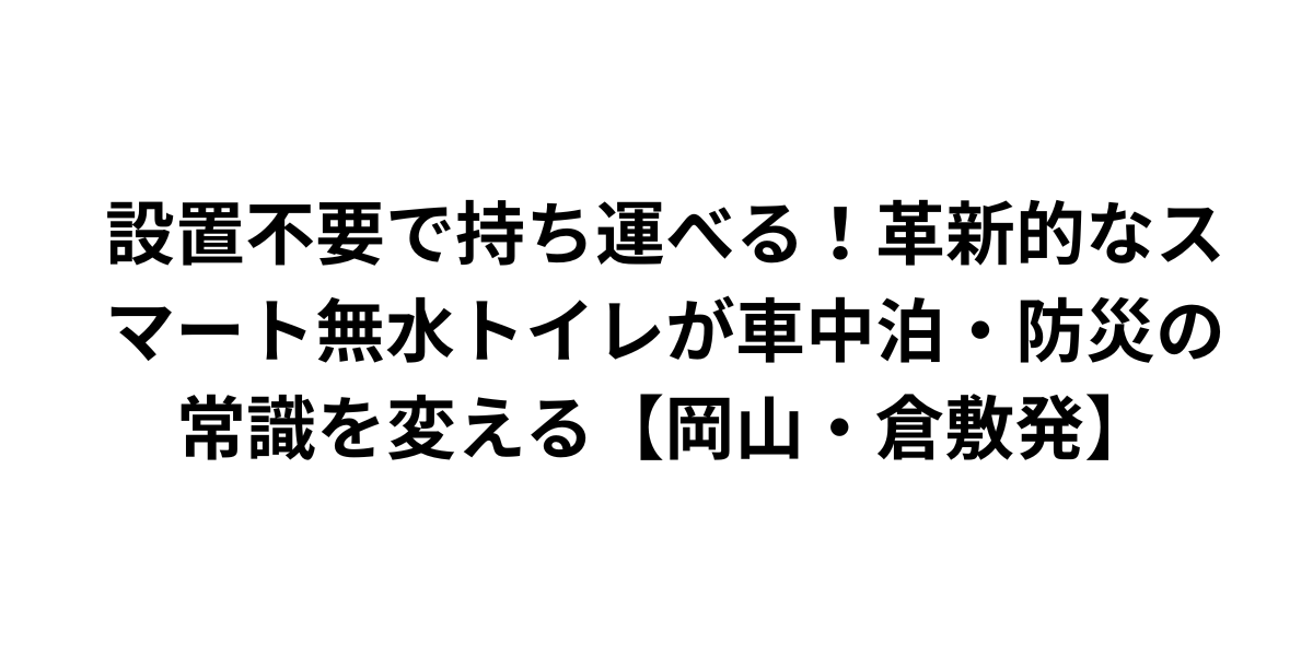 岡山県倉敷市から、こうした実用的でイノベーティブな製品が生まれていることは、地域経済にとっても大きな意義があります。2019年創業という若い企業ながら、国際的な商品の輸入販売を手がけ、日本市場のニーズに合った製品を提供している姿勢は素晴らしいですね。車中泊ブームや防災意識の高まりという時代の流れを捉え、「固定しない」という新しい価値を提案することで、従来製品の課題を解決しています。岡山・倉敷エリアには、こうした特定分野に特化した専門性の高い企業が増えており、地域全体の産業力向上につながっていると感じます。無水トイレという一見ニッチな分野でも、使いやすさと実用性を追求すれば、大きな市場が開ける好例だと思います。