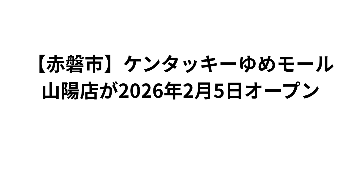 赤磐市下市のゆめモール山陽に、2026年2月5日(木)にケンタッキーフライドチキンがオープンします。独立店舗として展開される新店舗は、マクドナルドやモスバーガーに続く主要ファストフードチェーンの進出となり、赤磐市の食の選択肢を大きく広げます。