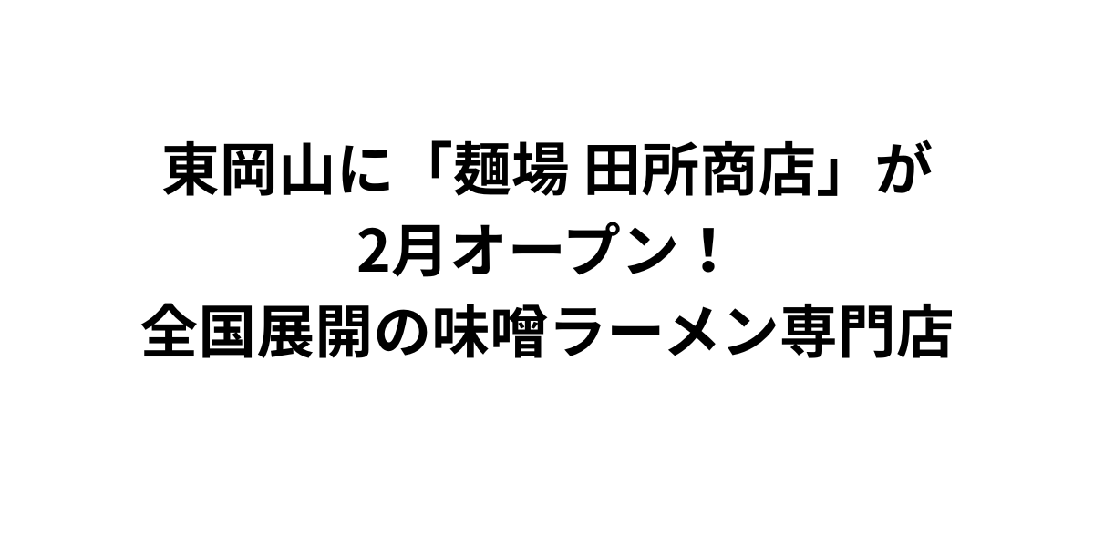 2026年2月、岡山市中区神下に「麺場 田所商店 東岡山店」がオープンします。味噌ラーメン専門店として全国で高い評価を受け、全国185店舗を展開する人気チェーン店の岡山市初出店となります。