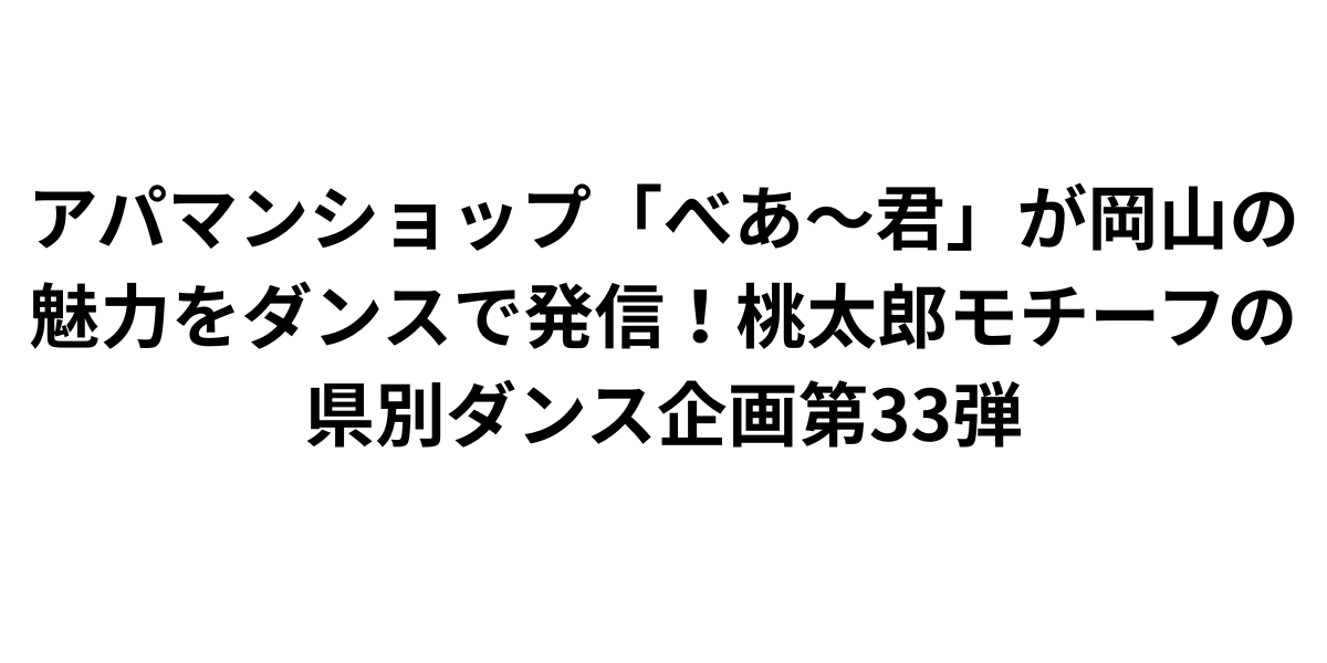 アパマンショップが展開する「べあ~君47都道府県ダンス企画」は、エンターテインメント性と地域PRを融合させた、非常にユニークな取り組みです。今回の第33弾として公開された岡山県をテーマにした『桃太郎 鬼退治べあダンス』は、岡山を代表する桃太郎伝説という文化的アイコンを活用し、親しみやすいダンス動画という形で全国に発信されています。