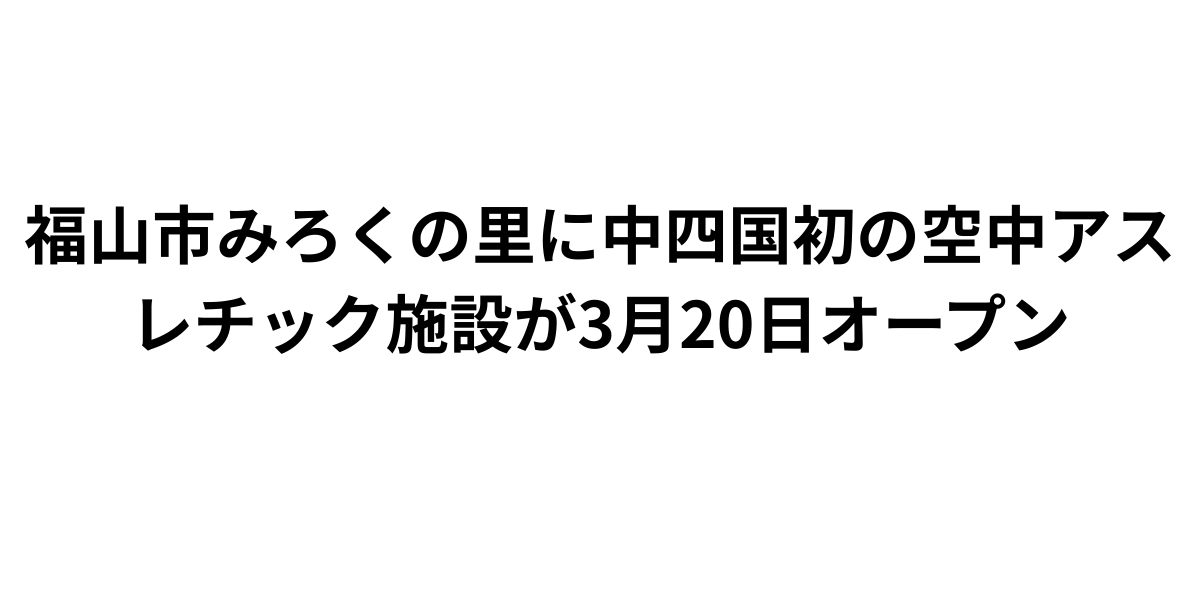 瀬戸内エリアに本格的な空中アスレチック施設が誕生するのは大きなニュースですね。岡山からも近い福山市という立地は、倉敷や総社からも日帰りで気軽に訪れることができます。瀬戸内の穏やかな気候の中で、家族みんなでアクティブに遊べる選択肢が増えることは、地域全体のレジャー環境の充実につながります。
