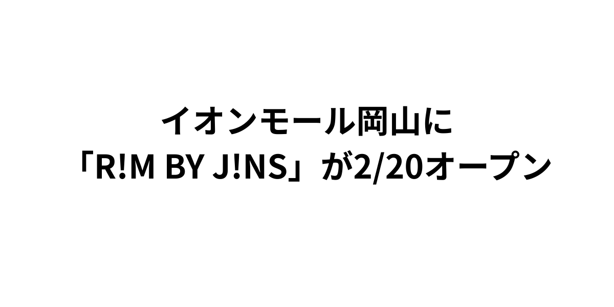 2026年2月20日(金)、イオンモール岡山3階に「R!M BY J!NS(リム バイ ジンズ)」がニューオープンします。旬のカラーと旬のデザインを自由に楽しめるアイウェアブランドとして注目を集めるR!Mが、岡山市北区下石井のランドマークであるイオンモール岡山に新規出店することで、県内のファッション・アイウェアシーンに新たな風を吹き込むことが期待されています。