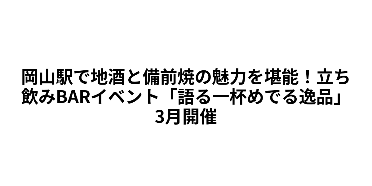 株式会社ジェイアールサービスネット岡山と西日本旅客鉄道株式会社中国統括本部岡山支社により、岡山の日本酒と備前焼の魅力を体感できる特別なイベントが開催されます。会場は岡山駅のさんすてテラス(さんすて岡山南館2階スターバックスコーヒー横)。「岡山駅立ち飲みBAR 語る一杯めでる逸品~雄町と地酒と備前焼~」と題されたこのイベントでは、県内の酒蔵や備前焼作家と直接対面し、有料試飲や作品購入を通じて、岡山が誇る伝統文化の深いストーリーや制作者のこだわりに触れることができます。