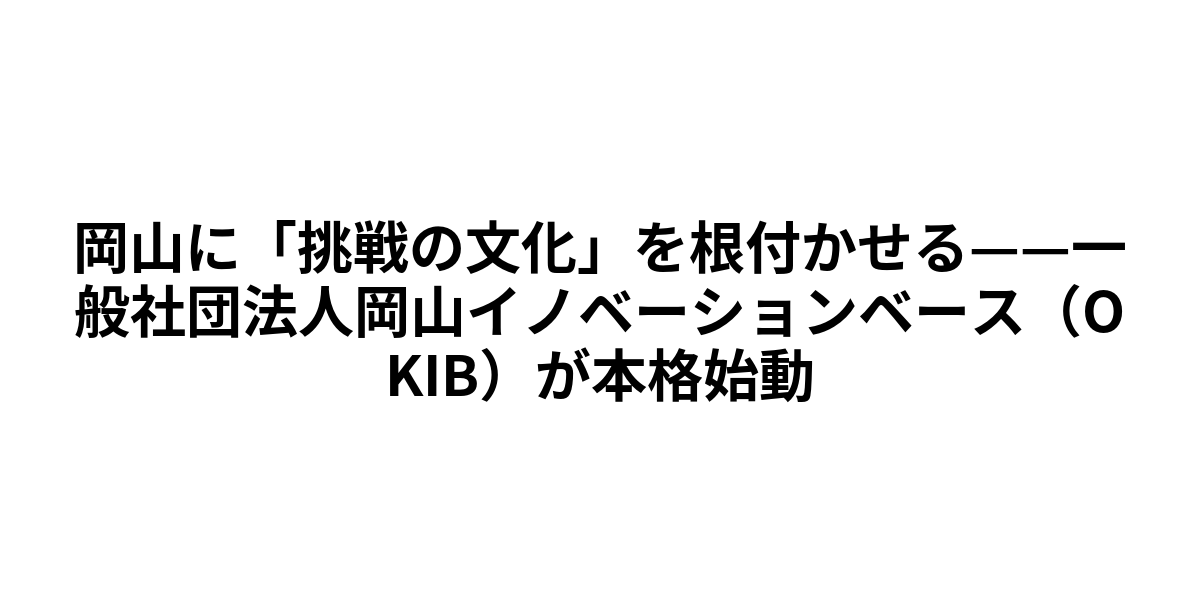 岡山に「挑戦の文化」を根付かせる——一般社団法人岡山イノベーションベース(OKIB)が本格始動