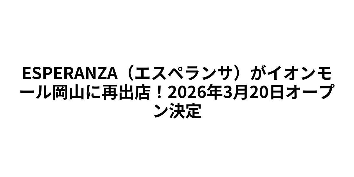 ※本記事の情報はPR TIMES掲載のプレスリリース(2025年)をもとに作成しています。営業時間・キャンペーン内容等は変更になる場合がありますので、最新情報はイオンモール岡山公式サイトまたはESPERANZA公式オンラインストアにてご確認ください。