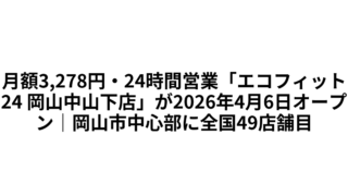 岡山市 月額3,278円・24時間営業「エコフィット24 岡山中山下店」が2026年4月6日オープン|岡山市中心部に全国49店舗目