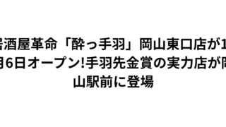 全国185店舗を展開する味噌ラーメン専門店が岡山市に初上陸 2026年2月、岡山市中区神下に「麺場 田所商店 東岡山店」がオープンします。味噌ラーメン専門店として全国で高い評価を受け、全国185店舗を展開する人気チェーン店の岡山市初出店とな...