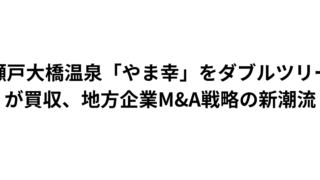 岡山発、地方企業M&Aの成功モデル誕生 2025年9月22日、岡山県倉敷市を拠点とするダブルツリー(旧ハヤシ)が、瀬戸大橋温泉「やま幸」を運営する山本幸の全株式を4億円で取得し、2026年1月に子会社化すると発表した。 この買収は、自動車販...